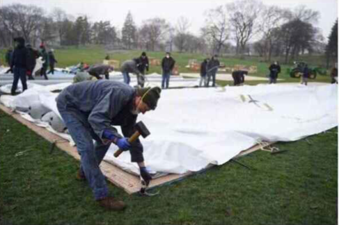 On the lawn of Central Park in Manhattan, hundreds of masked workers constantly unloaded pieces of white tarpaulin and other equipment on the grass to build a white greenhouse similar to a field hospital.The Mayor of New York said that with the continuous upgrade of Covid-19, there will be more and more mobile cabin hospitals.